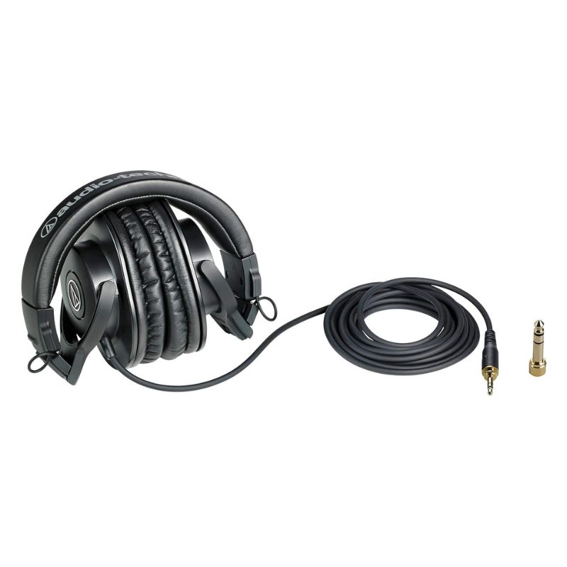Merging acclaimed features of the M-Series headphones with a foldable, travel-friendly design, the black Audio-Technica ATH-M30x monitor headphones offer solid build quality and audio performance for studio-based production, location recording, and daily listening. Outfitted with 40mm dynamic drivers and an over-ear, closed-back design, the ATH-M30x headphones deliver enhanced midrange definition and wide bandwidth (15 Hz to 22 kHz) while isolating you from outside sounds.