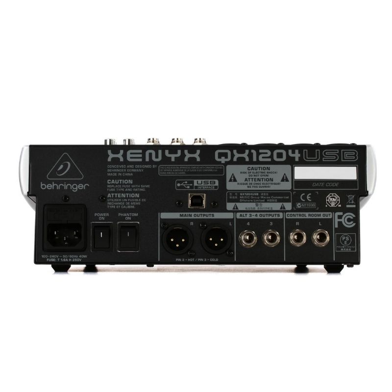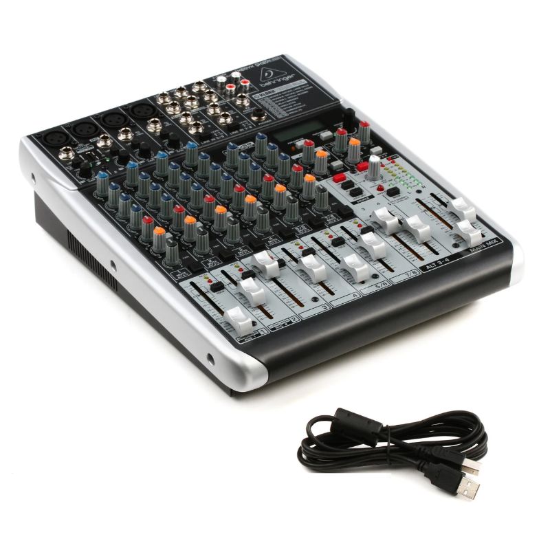 The Behringer Xenyx QX1204USB is a high-versatility 12-input analog mixer that bridges the gap between live sound and home recording. The “QX” series is specifically distinguished by the inclusion of a premium Klark Teknik FX processor, making it a step up from the standard Q-series mixers.