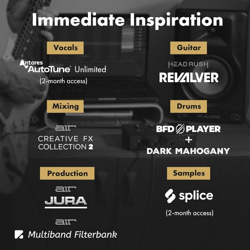 - Effects Plugins: A variety of effects plugins, including a version of Antares Auto-Tune, HeadRush ReValver for guitar amp simulation, and a suite of AIR Creative FX.