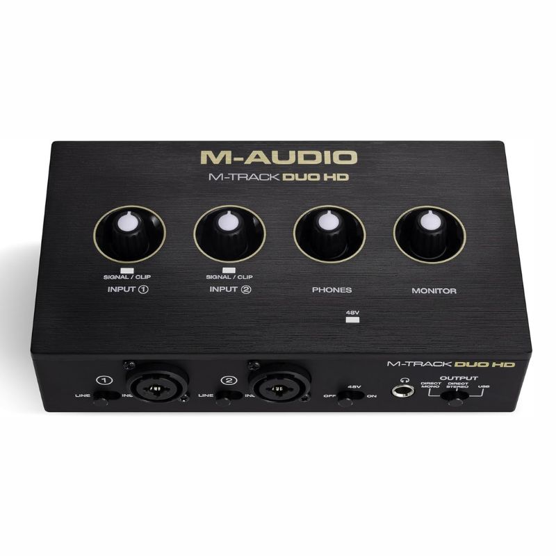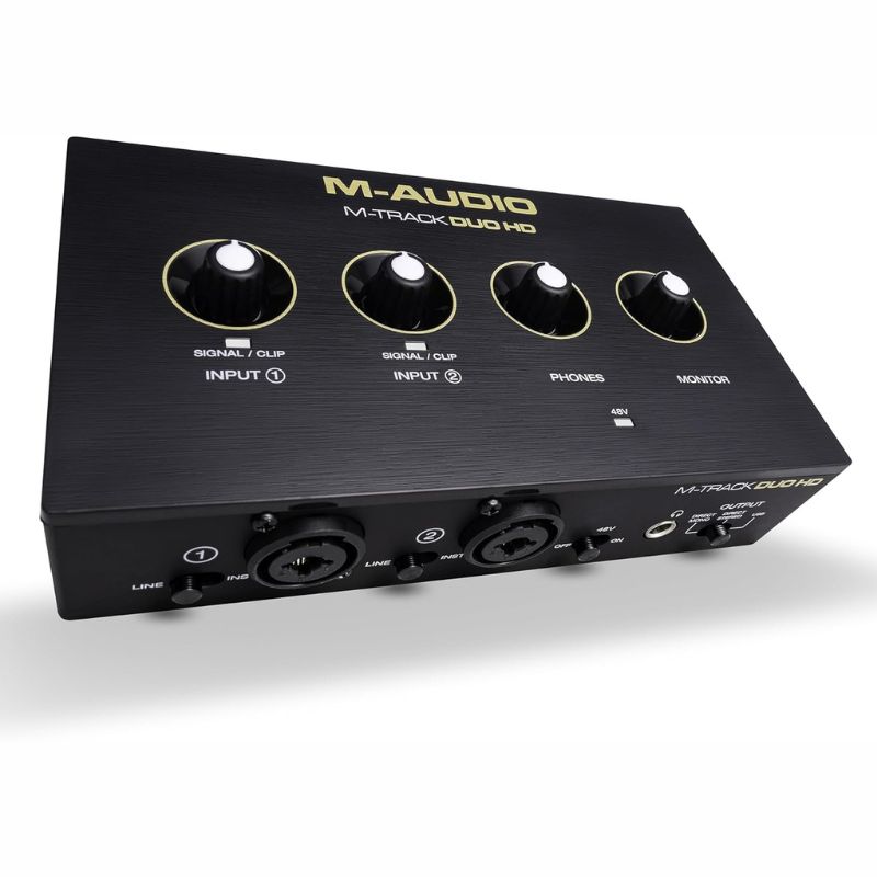 - Studio-Grade Preamps: The M-Track Duo HD interface features two M-Audio “Crystal Preamps” which are known for their low-noise and transparent sound. They provide up to 55dB of clean gain, which is ample for most dynamic and all condenser microphones.