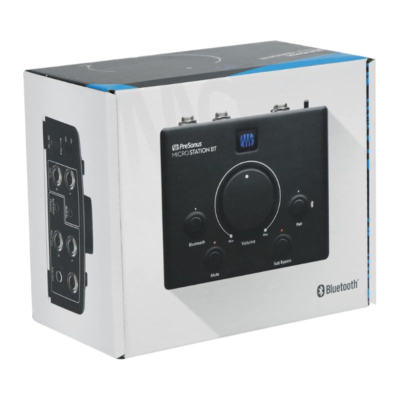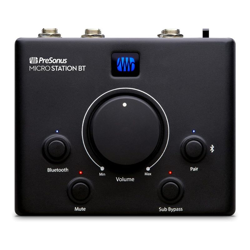The PreSonus MicroStation BT is a specialized desktop monitor controller designed for home studios and multimedia setups. Its primary purpose is to add Bluetooth connectivity and 2.1 subwoofer management to speakers that don’t natively support them.