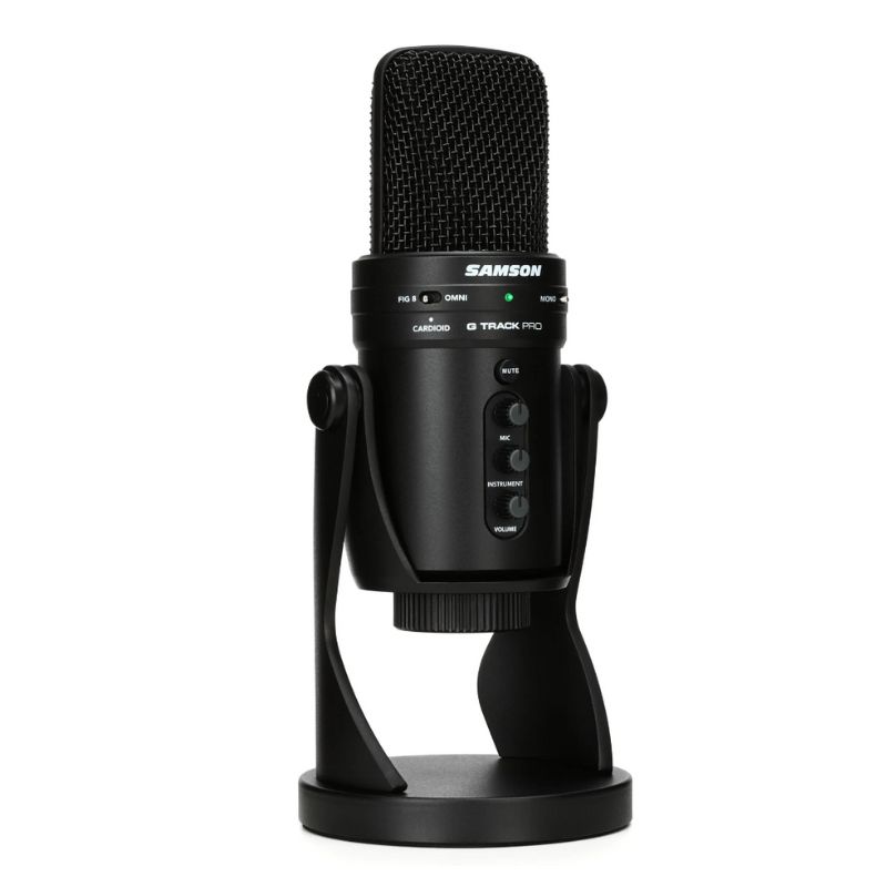 The Samson G-Track Pro is a versatile, all-in-one USB microphone designed for musicians, podcasters, streamers, and content creators. It stands out from a typical USB microphone because it also functions as a simple audio interface, allowing you to record both a microphone and an instrument simultaneously.