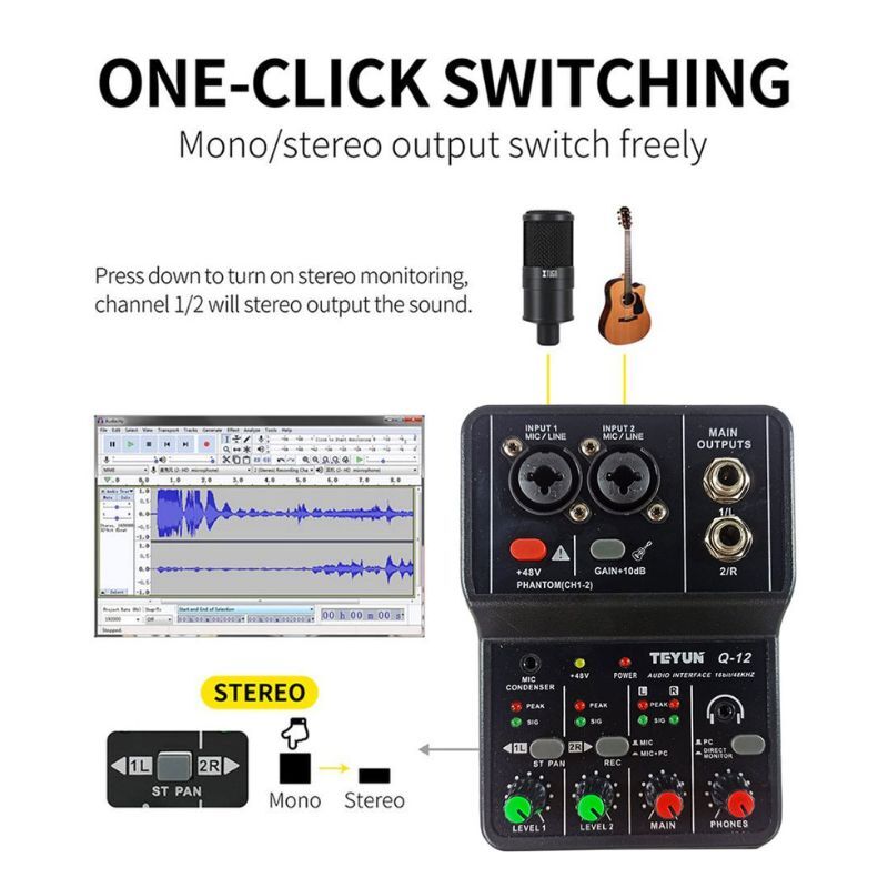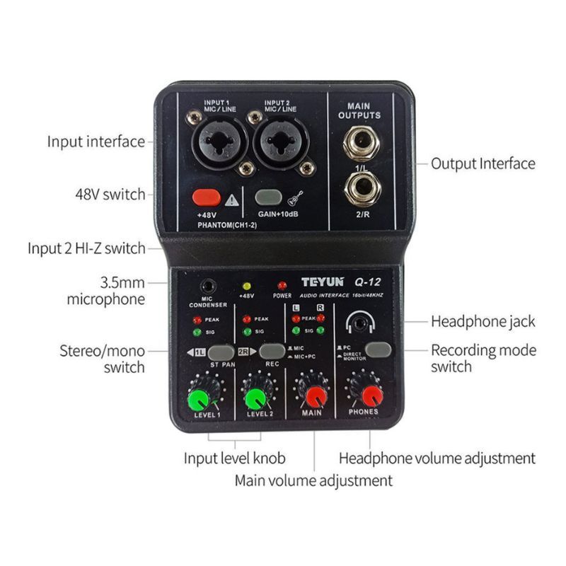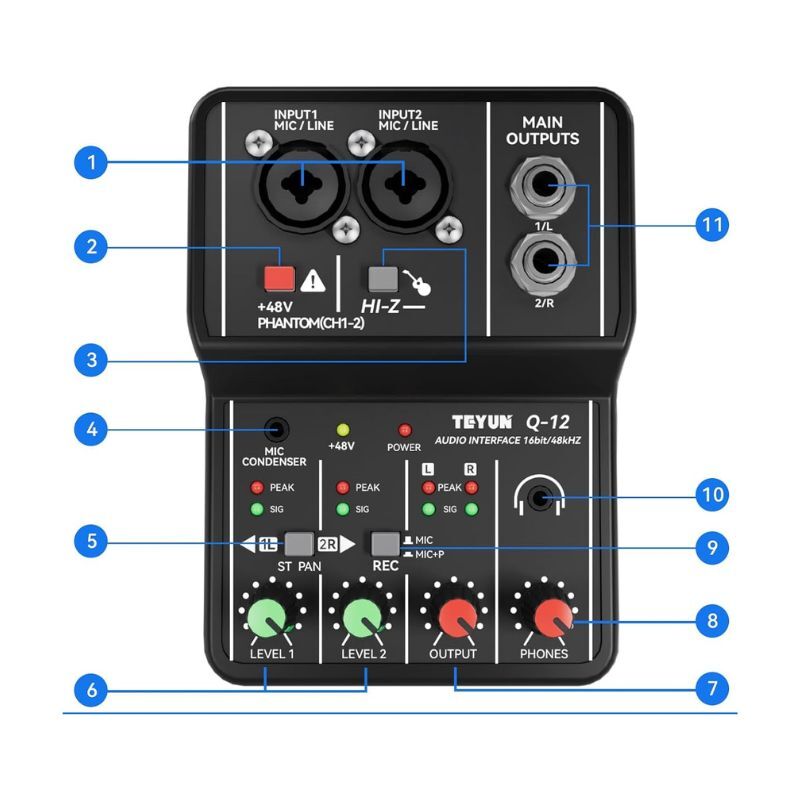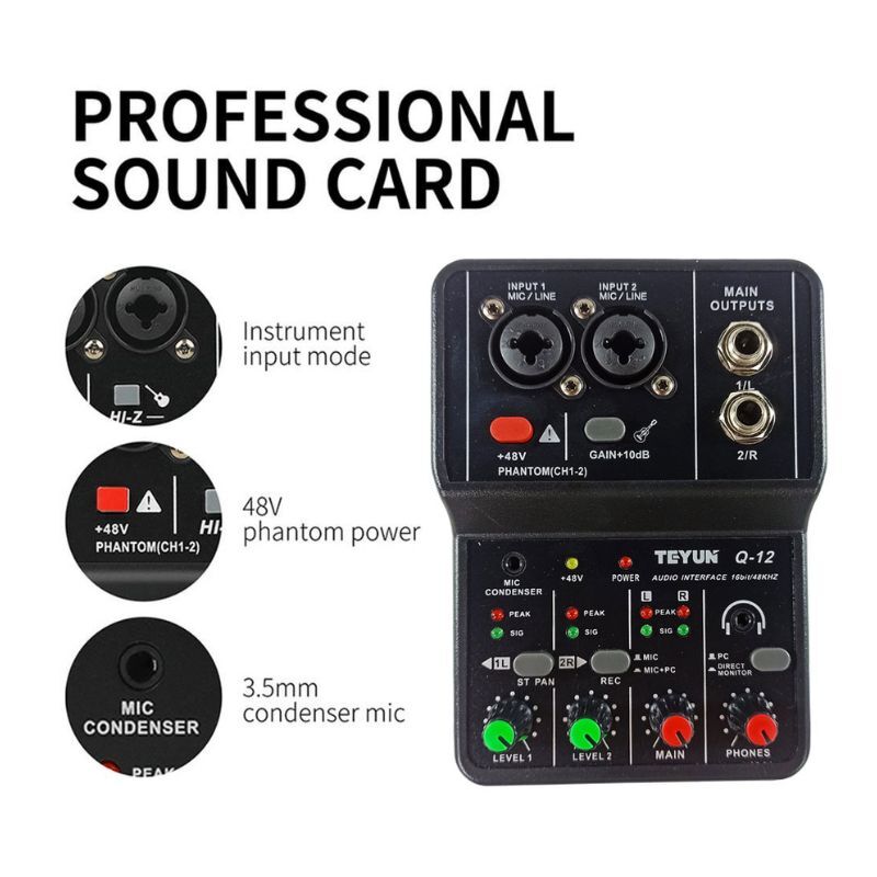 The TEYUN Q12 is an ultra-budget, 2-channel USB audio interface designed for those who need a functional recording setup at the lowest possible price point, it is frequently used by beginner streamers, podcasters, and hobbyist musicians.