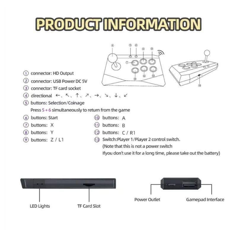 - Multiplayer Support: With the two wireless arcade joysticks included, the console is ready for two-player cooperative or competitive gaming right out of the box.